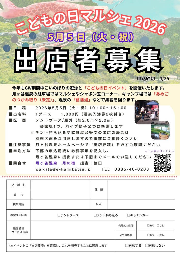 @出店者募集のチラシにある申込用紙を月ヶ谷温泉月の宿に提出。