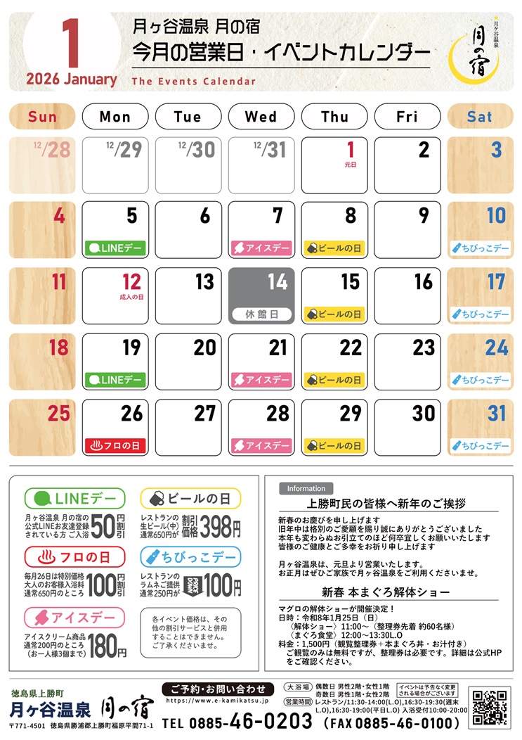 2026年1月のイベント・営業日です