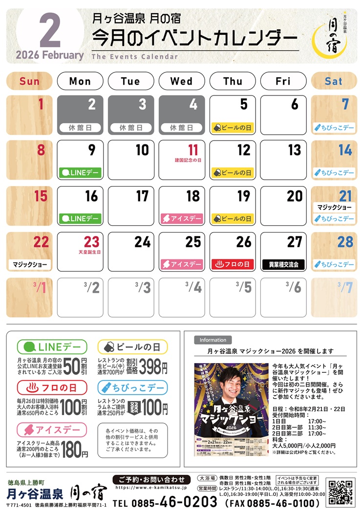 2ŒŽ‚̃Cƒxƒ“ƒgE‰c‹Æ“úƒJƒŒƒ“ƒ_[‚Ì‚²ˆÄ“à